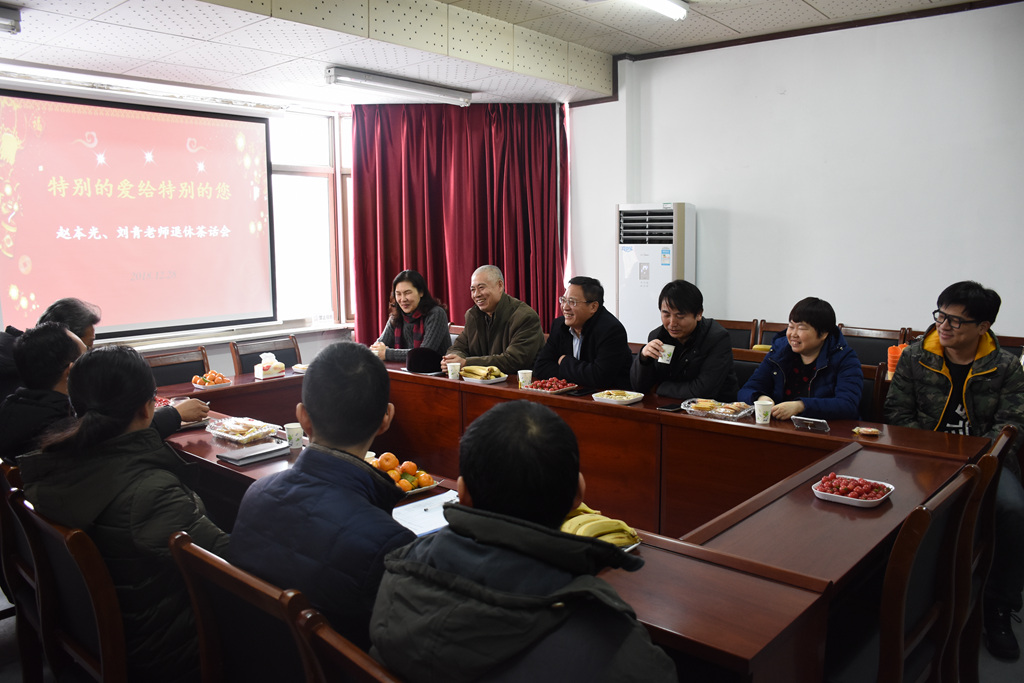 2018年12月28号,上午10点,工商管理系全体教师欢聚在文科馆301,召开主题为“特别的爱给特别的您”欢送赵本光老师和刘青老师的退休恳谈会。