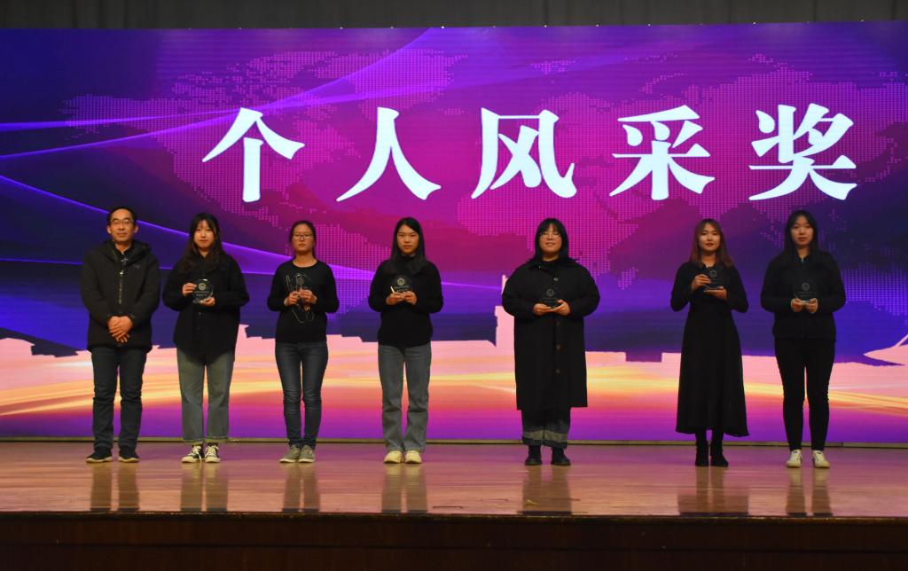 开场5分钟视频总结回顾了2019年yl6809永利集团的学生工作。本次表彰大会颁奖环节分为奖学金、创新创业、先进集体、社会志愿与志愿服务、校园活动五个部分;风采展示打破传统形式,融入歌舞、小品、朗诵,展现新时代青年学生斗志昂扬的精神风貌和勇于担责的家国情怀。优秀学生代表崔明月穿插法语、英语、汉语三种语言分享了自己的学习心得;双创先进个人吴浩宇汇报了挑战杯参赛经历,鼓励同学们投身到各项科创竞赛中;红旗团支部经171-2班同学们演绎的班级故事赢得观众阵阵掌声,充满正能量的剧情激励同学们对标先进;朗诵《青春榜样 前行力量》,展现了我院学子用行动践行初心使命,向祖国七十华诞献礼。随着歌曲《无限可能》旋律响起,表彰大会接近尾声。