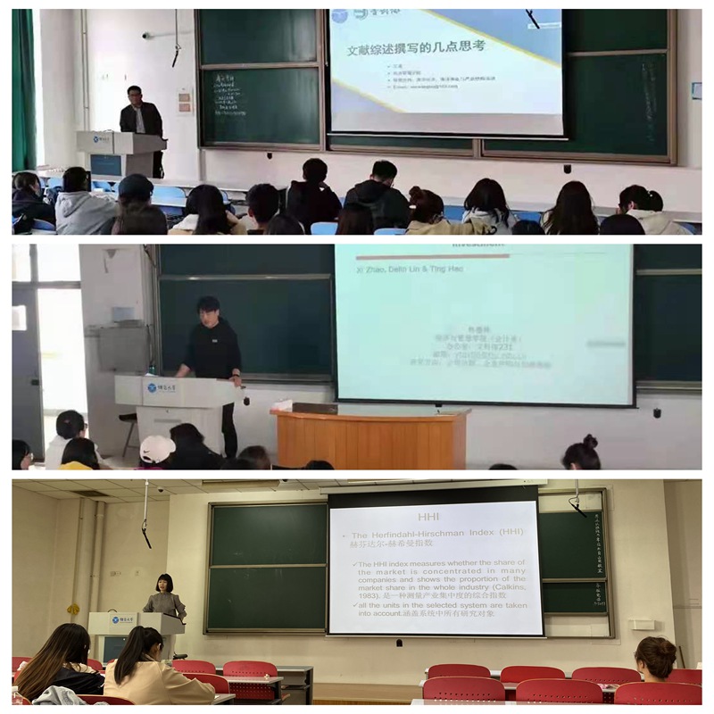 主讲报告人就学术论文选题技巧、英文论文写作技巧、文献搜集与文献综述写作要点,以及在撰写文献综述时,逻辑体系的建立和专业表述的规范等问题加以分解和剖析。老师们从论文的创新点出发,对文章的脉络和写作思路进行系统梳理,围绕论文整体结构、特点及类型等的拆解方式,从论文审稿人角度来进行详细介绍。每次会后,主讲报告人也对现场同学们关于学术论文写作相关问题的疑问进行了耐心、细致的解答。