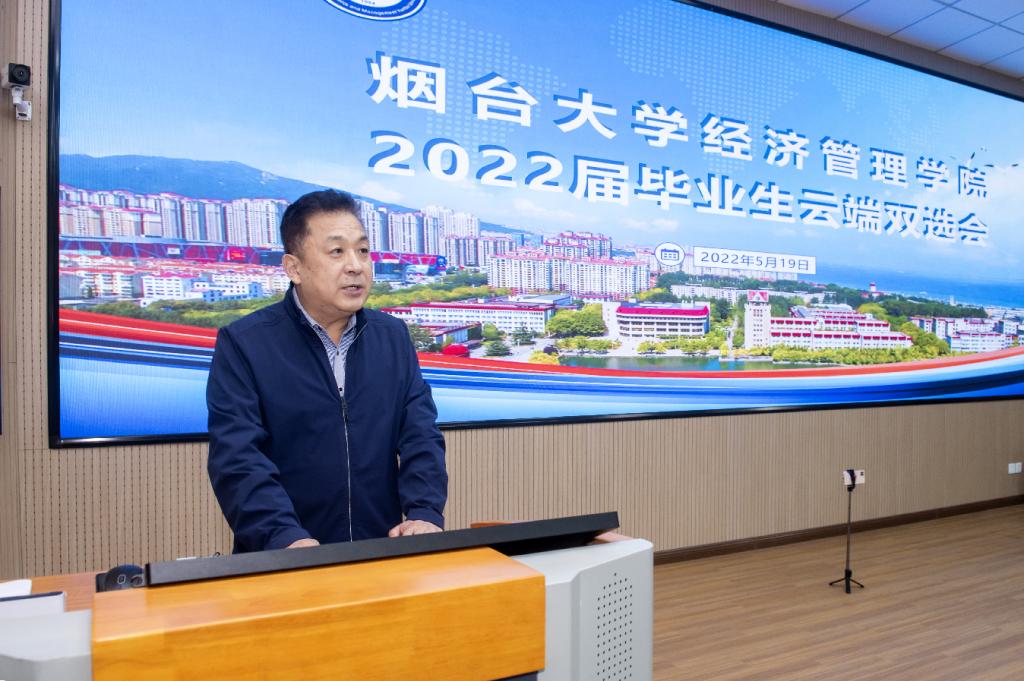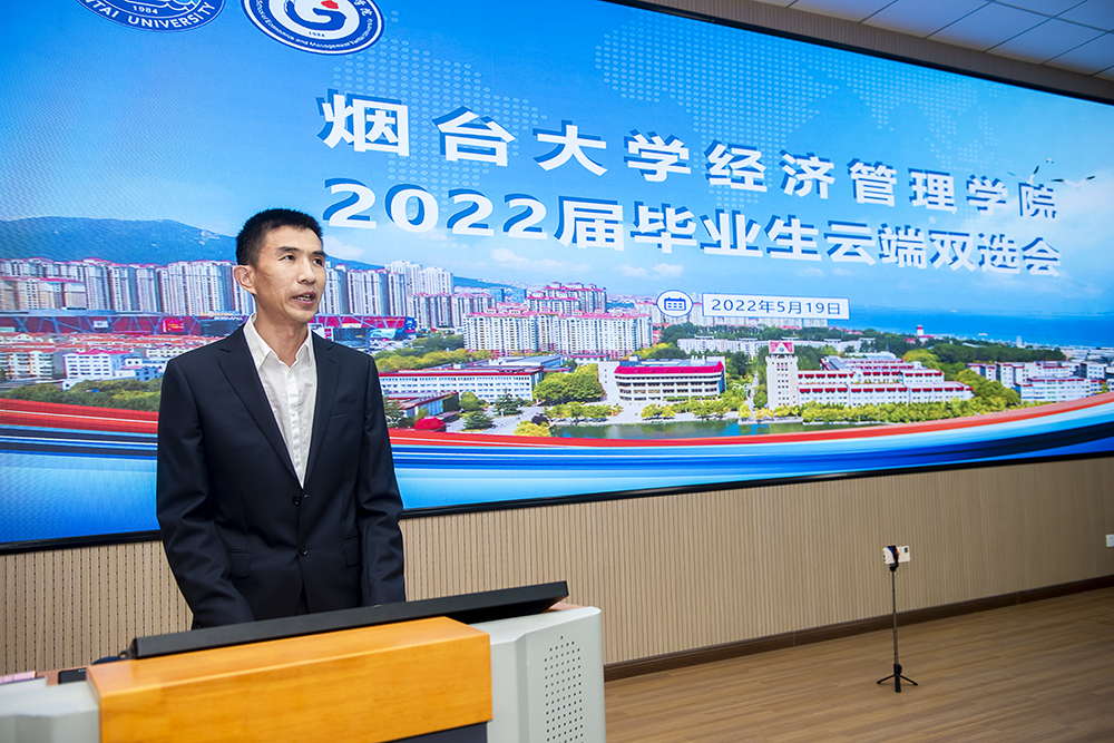 经管学院院长宋岩在致辞中全面地介绍了学院的办学历史、办学特色、专业设置、办学成果以及2022届毕业生总体情况。他表示,希望通过此次双选会,进一步增进毕业生和企业的沟通了解,一方面能够为企业输送人才,另一方面帮助毕业生高质量就业,实现双赢。企业方代表,烟台明远创意生活科技股份有限公司供应链总监,yl6809永利集团2000级校友钟智雨进行交流发言。