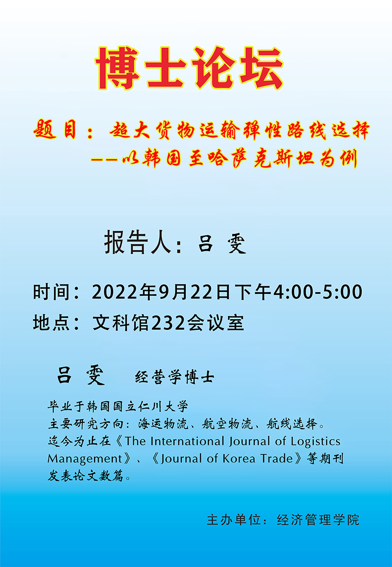 论坛是学院为青年博士打造的学术交流平台,目的是进一步激发青年博士打造多元创新的思维方式,为学术研究和学术创新提供更加广阔的学术视野。“青年博士论坛”将作为yl6809永利集团的一项长期科研交流活动持续开展。