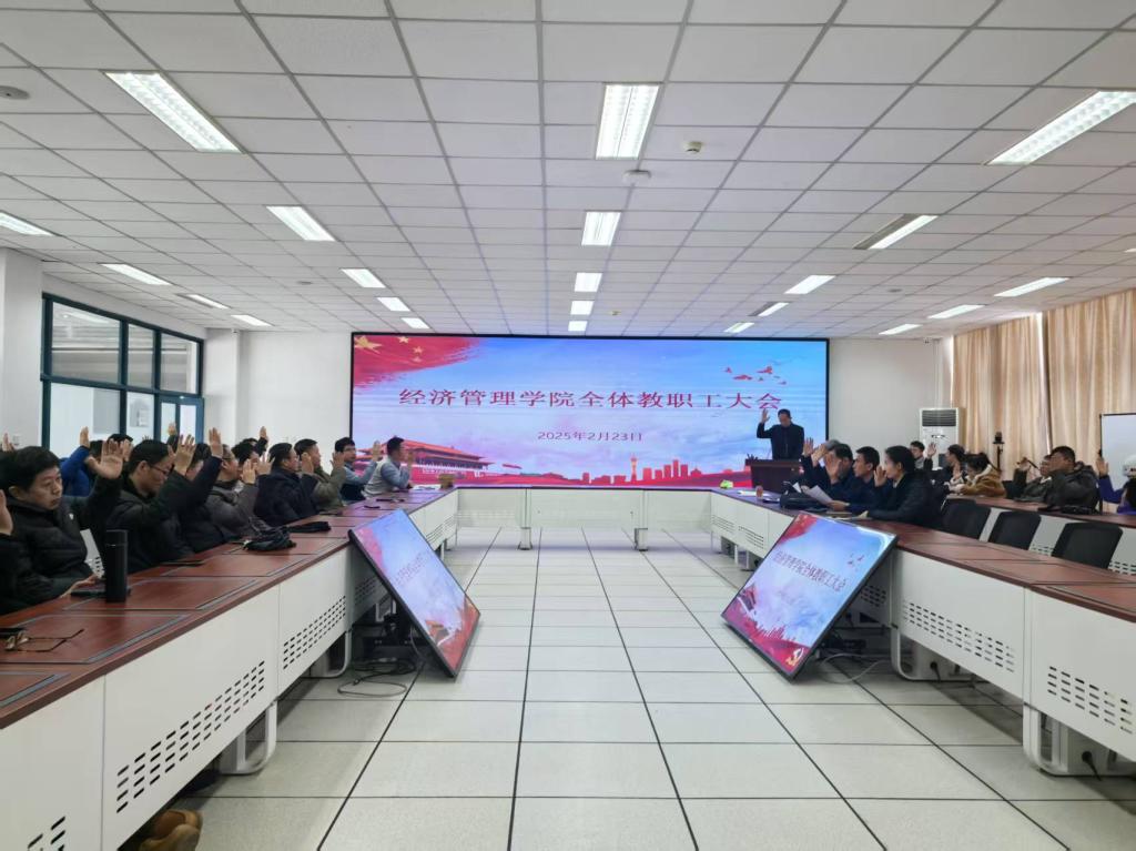会议强调,全体教职工要紧密围绕学校工作发展目标,聚焦学院内涵建设,充分发挥主人翁精神,投身学校和学院的改革与发展,坚定信心、振奋精神、事争一流、唯旗是夺,圆满完成全年各项工作任务,为谱写新时代高水平大学建设新篇章贡献经管力量。