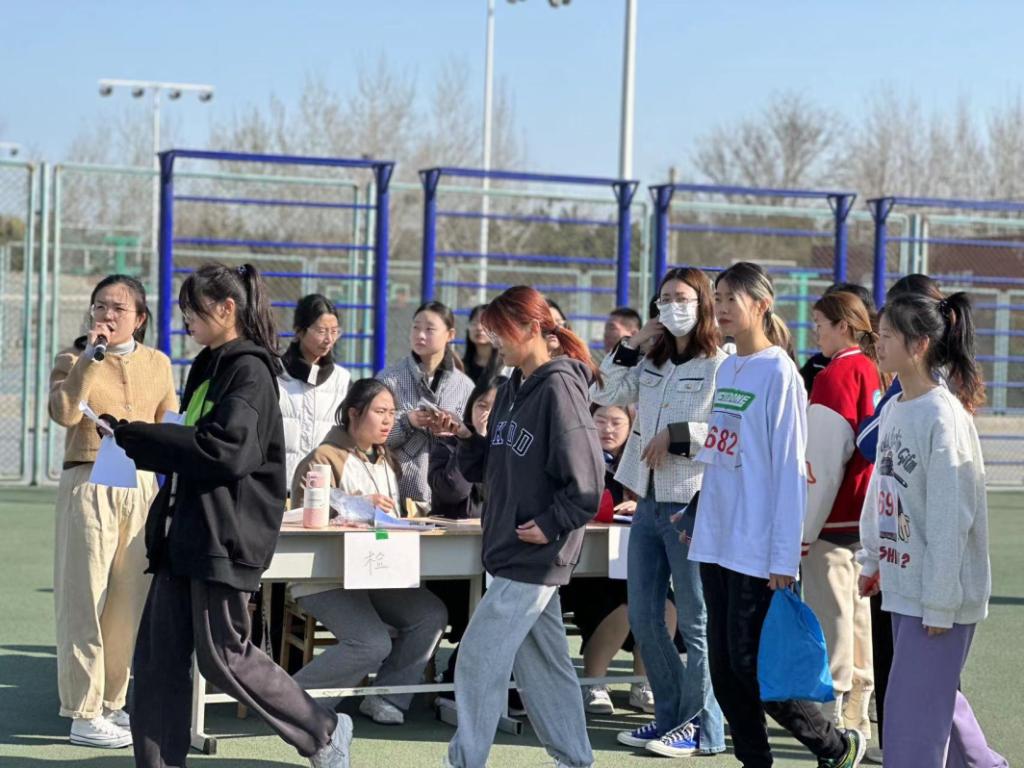 托球跑、垒球掷准、50 米欢乐跑、“射门踢准”、一分钟跳绳、集体跳大绳……体育场东侧,如火如荼地开展着教职工趣味运动项目,既有竞技比拼、体力角逐的激烈性,又充满互助合作、友好交流的趣味性。从三尺讲台到运动场,教书育人的老师摇身一变成为赛场上的运动员,斗志昂扬,使出浑身解数,迸发着前进和竞技的动感活力。加油声、欢呼声、喝彩声,体育场上欢声笑语,此起彼伏。随着男子5000米的选手冲向终点,比赛圆满落下帷幕。各班级代表队在主席台前集结,等待比赛结果的公布。