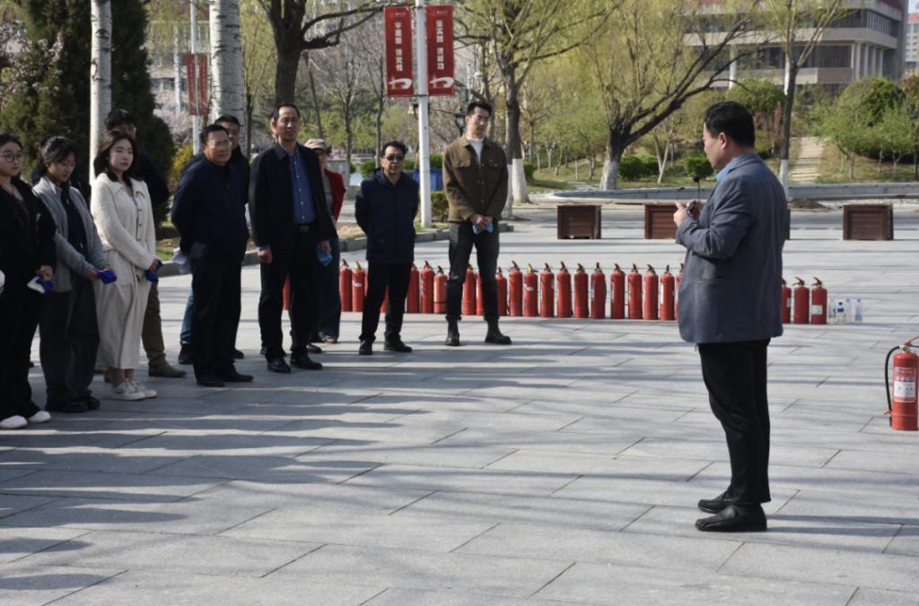 应急疏散演练结束后,全体师生参加了保卫处的消防安全培训。王希峰老师细讲解了火灾逃生注意事项,消防设备常识,灭火器的正确使用方法和步骤、适用范围及操作,并现场进行了示范。在专业人员的指导下,师生们积极踊跃地依次亲自上手进行了灭火器的实操演练,进一步巩固了消防安全知识,提高了实战技能。