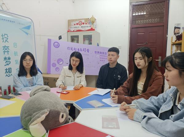 学院菁听心语心理辅导站在文科馆门前准备了“你笑起来真好看”微笑打卡展板,师生们积极参与,绘制富有创意的微笑表情,留下阳光的笑脸,并进行拍照打卡纪念。
