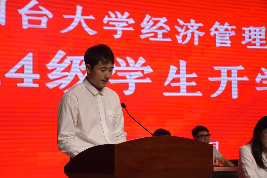 在师生代表发言环节,1995级优秀校友东北财经大学会计学院博士生导师耿云江教授鼓励学弟学妹珍惜大学时光,多读书、多思考、多实践,让知识成为探索世界的钥匙。导师代表李心月老师深情回顾了与新生军训和班会的相聚时光,鼓励学生在自己热爱的赛道上全力奔跑,刷新经管最好成绩。研究生代表任政存讲述了自己的科研经历,就成为一名合格的“经管人”分享了感悟。本科生代表翟静漪就自身的成长经历勉励学弟学妹以烟大经管为起点,做好规划,在实践中学习,结交新朋友、体验新事物。研究生新生代表徐庆是一名退伍军人,表示在人生旅途的新起点上,将不忘初心、坚定信心,求真学问,准备迎接新挑战。本科生新生代表郭富成跨越两千多公里来到yl6809永利集团,表示将勇往直前、持之以恒,在烟大经管温暖的大家庭里和同学一起度过难忘的青春岁月。