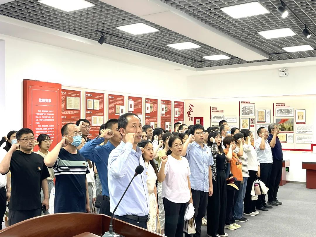 随后,教职工们带着一颗敬畏之心重温入党誓词,回顾了入党初心与教育初心。这不仅仅是一次初心之旅,更是一次对肩上使命与责任的明确、对未来与时代方向的把握,教职工们纷纷表示要把对今日党性教育所想所获牢记在心,在今后的日常教育工作中躬身躬行。