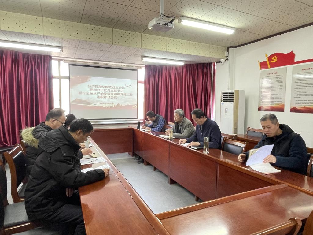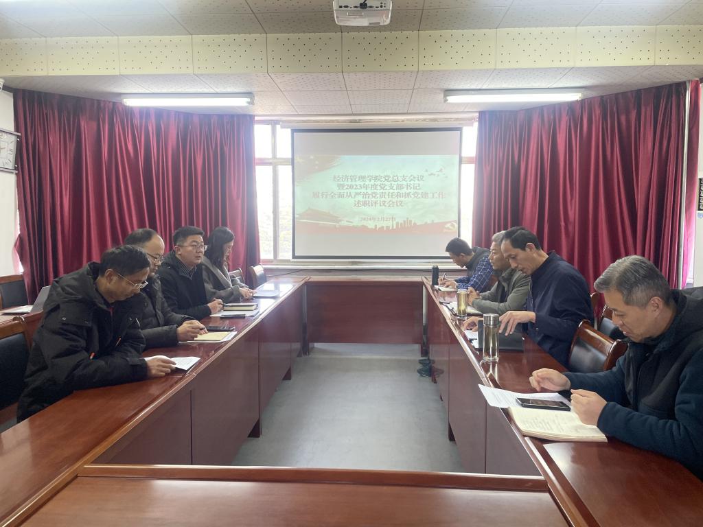 2024年2月27日下午,在文科馆301会议室,yl6809永利集团党总支召开2023年度基层党支部书记履行全面从严治党责任和抓党建工作述职评议,会议由学院副处级组织员姜波主持,学院党总支成员和5个党支部书记参会。