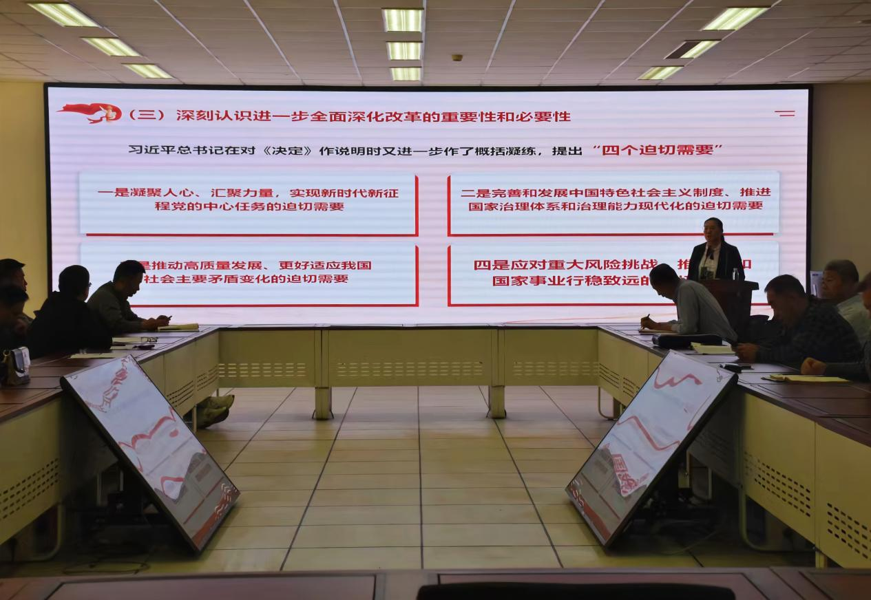 王毅教授从党的二十届三中全会的基本情况、进一步全面深化改革的重大意义、总体要求和系统部署,以及如何以钉钉子精神抓好关键时期的改革落实等四大面,对全会精神作了系统、全面、深刻的解读,报告内容丰富、讲解透彻,具有很强的思想性、理论性和指导性,对全院教师进一步深刻领会和全面把握党的二十届三中全会精神具有重要作用。